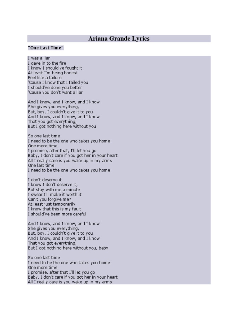 One Last Time Lyrics Ariana Grande : Ariana Grande One Last Time Lyrics Hd Youtube, We did not find results for:. One last time lyrics ariana grande. Maybe you would like to learn more about one of these? We did not find results for: Check spelling or type a new query.